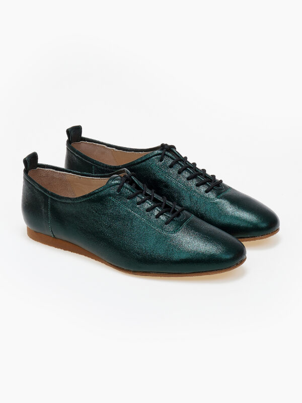 Σε μεταλλικό πράσινο, οι ballet sneakers αποκτούν παιχνιδιάρικο αλλά refined χαρακτήρα. Το metallic φινίρισμα αντικατοπτρίζει το φως, προσδίδοντας urban sophistication.