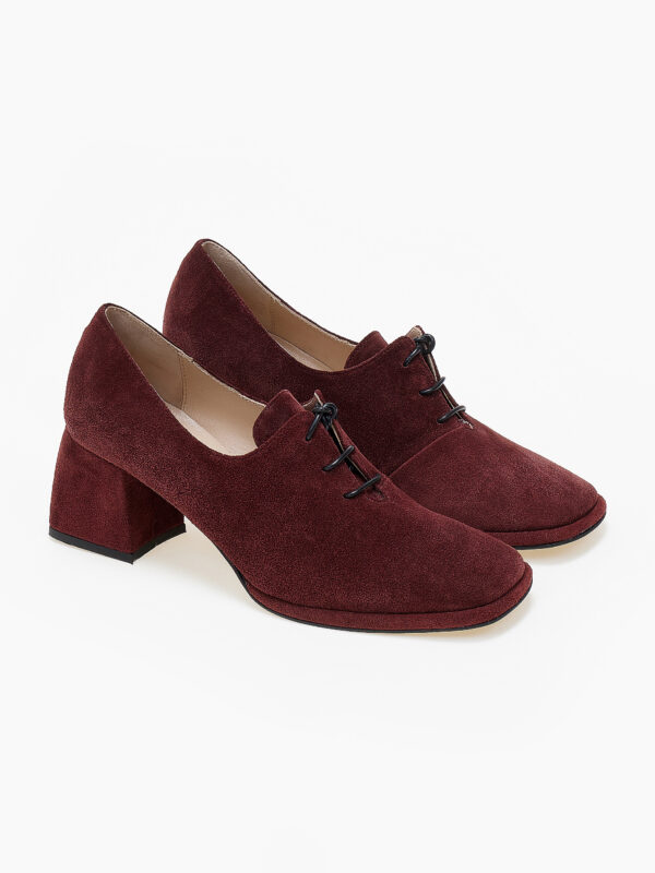 Suede loafers σε σκούρο maroon, που αποπνέουν κομψότητα και διακριτική ζεστασιά. Το suede υλικό δίνει βάθος και πολυτέλεια στο σχέδιο.