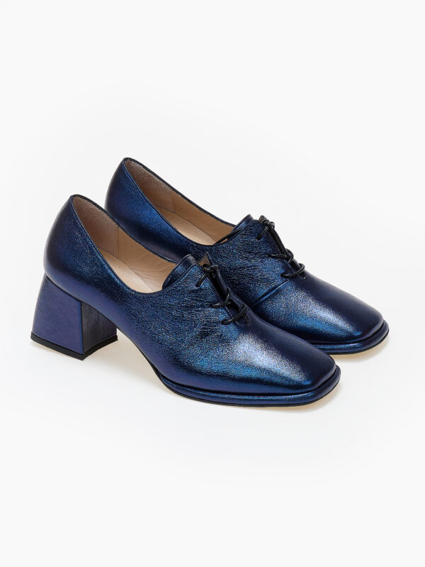 Φλατ loafers σε metallic μπλε, ιδανικά για να προσθέσουν διακριτικό φως στο χειμερινό styling. Η glossy υφή τους δίνει δυναμισμό χωρίς να χάνει την κομψότητά του.Συνδύασέ τα με: navy knit set ή white wide pants για casual elegance.