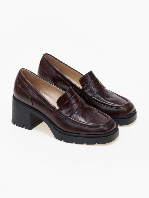 Classic loafer με mid heel σε vintage brown, που συνδυάζει θηλυκότητα με old-school κομψότητα. Το ελαφρώς ψηλότερο τακούνι δίνει επιπλέον ισορροπία στο βήμα.