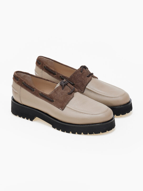 Διχρωμία σε γήινους τόνους, με συνδυασμό suede και Caviar υφής για ένα refined casual αποτέλεσμα. Το διακριτικό τακούνι χαρίζει ύψος, χωρίς να στερεί άνεση.